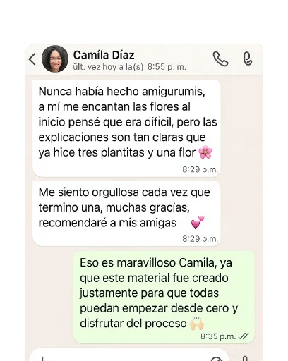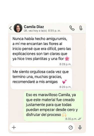 Imagina tu mesa llena de vida y color, rodeada de tus propias creaciones — cada flor, un pequeño sueño tejido con amor. 🧶🌸